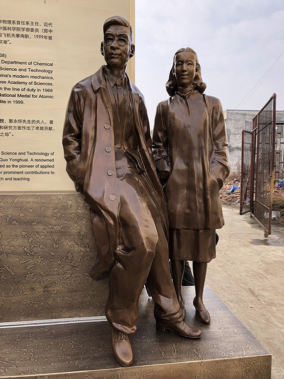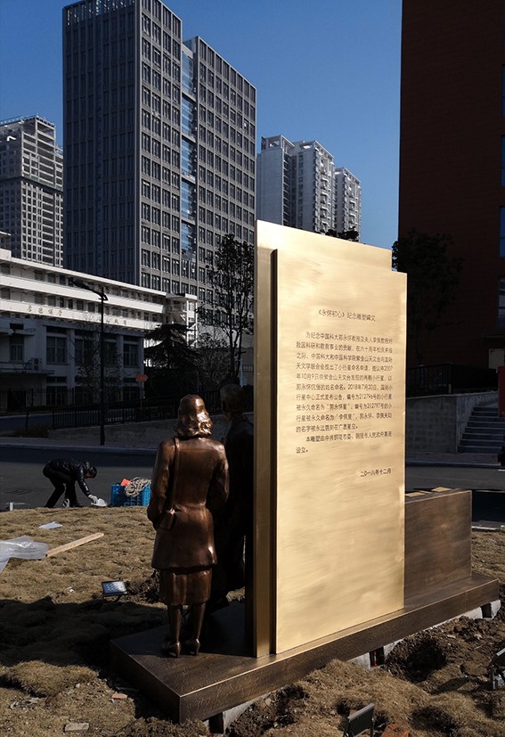 為"兩彈"功勛塑像,為"兩彈"精神立碑。銅官府文化創(chuàng)意股份公司承制的"永懷初心"郭永懷、李佩夫婦雕塑在中國科技大學(xué)校園落成!